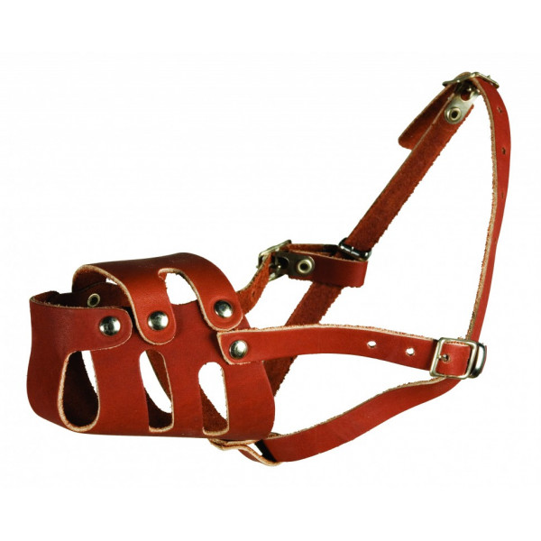 Классический стильный цельнокроеный намордник из натуральной шорно-седельной кожи толщиной 4 мм для собак средних и крупных пород. Кожаные детали намордника обработаны специальным водоотталкивающим раствором. Соединения намордника выполнены холнитенами (односторонними закрытыми клепками) с антикоррозийным покрытием. Намордник имеет два регулируемых по размеру головы и морды собаки ремня шириной 15 мм, со стальными пряжками шириной 20 мм.