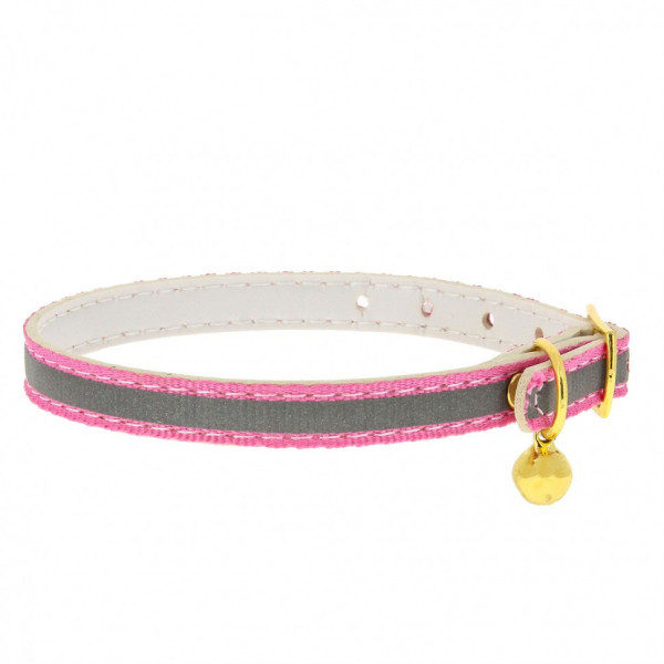 Ошейник для кошек Каскад Синтетик светоотражающий, с бубенчиком 1 см на шею 30 см, розовый.