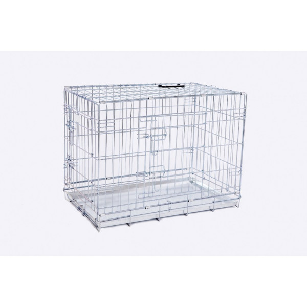 Клетка транспортировочная (выставочная) цинк 2-х дверная. Клетка изготовлена из оцинкованной стали, диаметр прутьев 3 мм и 4 мм. У клетки две двери, надежные замки, съемная ручка. В сложенном виде клетка занимает мало места, а механизм складывания простой и удобный.