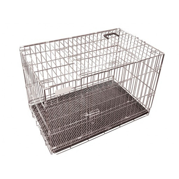 Клетка транспортировочная (выставочная) цинк 2-х дверная. Клетка изготовлена из оцинкованной стали, диаметр прутьев 3 мм и 4 мм. У клетки две двери, надежные замки, съемная ручка. В сложенном виде клетка занимает мало места, а механизм складывания простой и удобный.