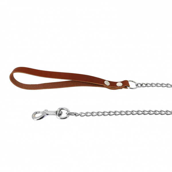 Изящный и стильный поводок-цепь с удобной ручкой из натуральной кожи станет вашим любимым аксессуаром для повседневных прогулок с питомцем или дрессировки. Цепь имеет стойкое хромирование; ровный строй звеньев не позволит цепи перекручиваться.