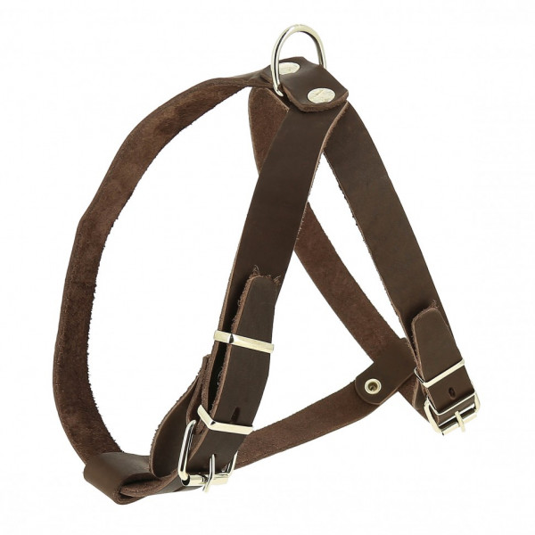 Эта классическая стильная шлейка из натуральной кожи высокого качества и крепкой металлической фурнитуры подойдет собакам мелких и средних пород. Размер шлейки легко регулируется, она не будет сковывать движения. И даже при постоянной долгой носке ваш питомец будет чувствовать себя в ней комфортно.